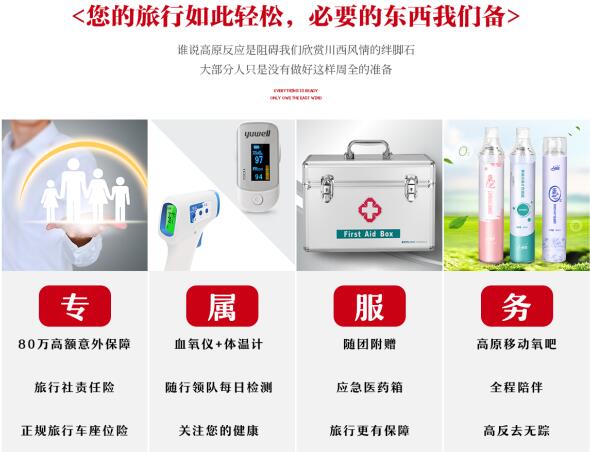 4.一份專業(yè):全團(tuán)配備公用應(yīng)急藥箱1個(gè)、全團(tuán)配備公用血氧儀1個(gè)、全團(tuán)配備溫度計(jì)1支、全團(tuán)貴賓每日血氧監(jiān)測(cè)1次,線路專屬紀(jì)念橫幅1條、各種擺拍新潮手拉旗子若干。刷出來(lái)的好評(píng)叫營(yíng)銷,做出來(lái)的好評(píng)叫品質(zhì)!