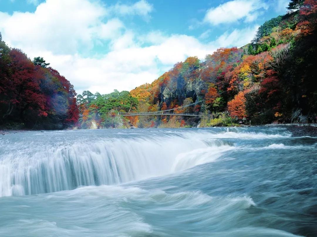 沼田地區(qū)不但擁有古老的溫泉,還有著豐富的自然景觀資源,其中“吹割瀑布”更是有“東方的尼加拉瓜”之稱。更加難以置信的是,吹割瀑布乃是蝸旋而成,二壁足有30米之寬,形成舉世無雙的景觀,甚至讓人連想到天洞之感覺,非常神奇。而所謂吹割,即日語將裂縫稱為“割”,看起來尤如大自然神口用力吹制而成,可以如此近距離觀察這大自然的杰作讓人不禁心生感嘆。