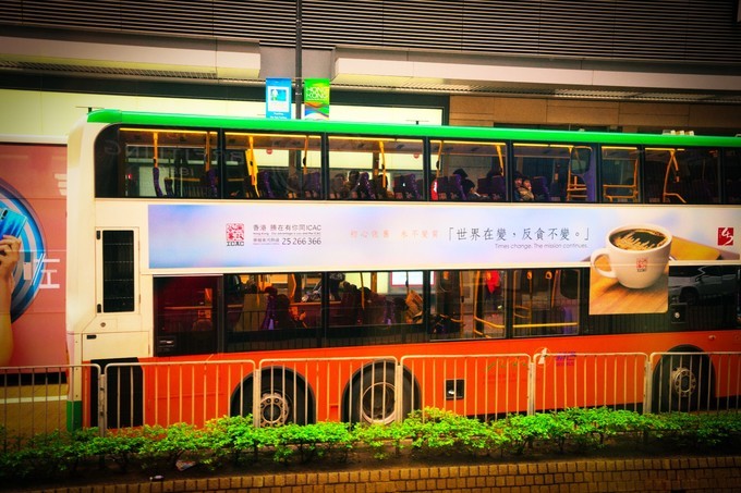 等了30分鐘的代價是,可以坐在big bus樓上第一排,遮風擋雨還能偷拍 。 香港 隨處可見的異域風情