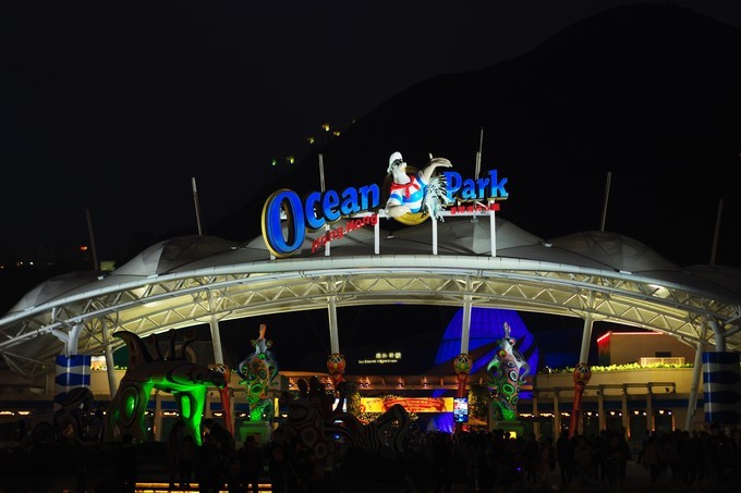 出園的時候來一張,進園的時候是全體人民大合照 ,晚上其實依然人頭攢動,只是看不到了 ?,F(xiàn)在到海洋公園直接乘坐港島線在“金鐘站”換乘南港島線,兩站就到了“海洋公園”站,幾乎出站即達,不再需要乘坐公交車。