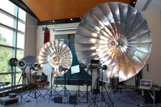 B2PRO和LIGHTSTAR首次推出的產(chǎn)品,燈具表面材料和照射光源發(fā)生反應(yīng),用成千上萬(wàn)個(gè)銀色反光照亮人物光源。根據(jù)不用傘面的大小,均有不同的柔、硬反光材料可供選擇。
