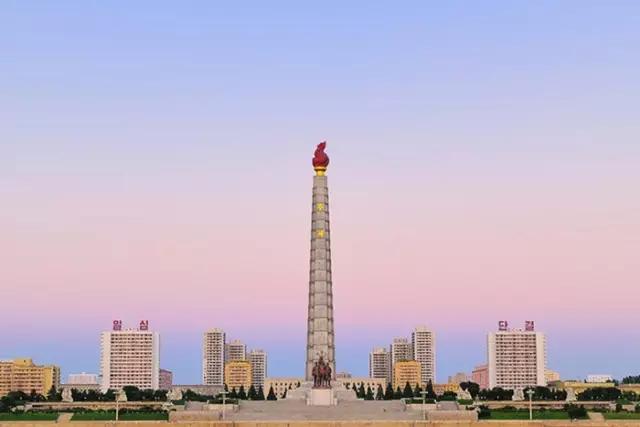 △ 主體思想塔,位于平壤市中心的大同江畔,是金日成創(chuàng)立的“主體思想”的象征。塔及其周?chē)綄俳ㄖ嫉乜偯娣e15萬(wàn)平方米。