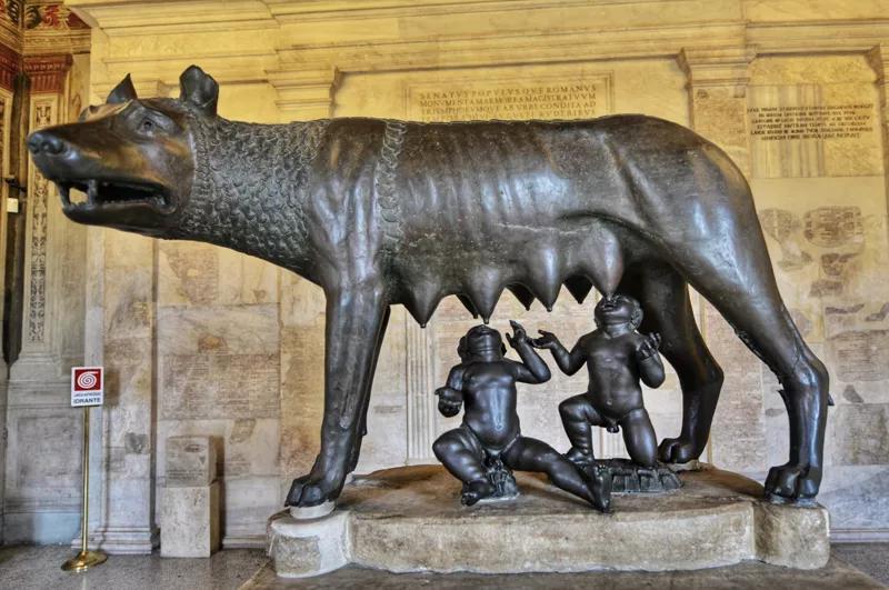 傳說公元前8世紀(jì),古希臘君主兩個(gè)襁褓中的兒子,在權(quán)位爭斗中被人投入臺(tái)伯河,順流漂到這座7丘之地,兩個(gè)嬰孩兒喝狼奶撿回小命。