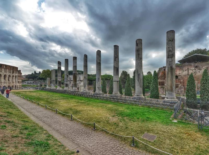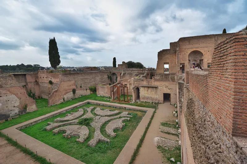 今天的帕拉蒂尼山上,遍布著體積龐大的地基,這些建筑雖然僅剩下被歲月蠶食的裸石骨架,卻依然氣勢(shì)恢宏。