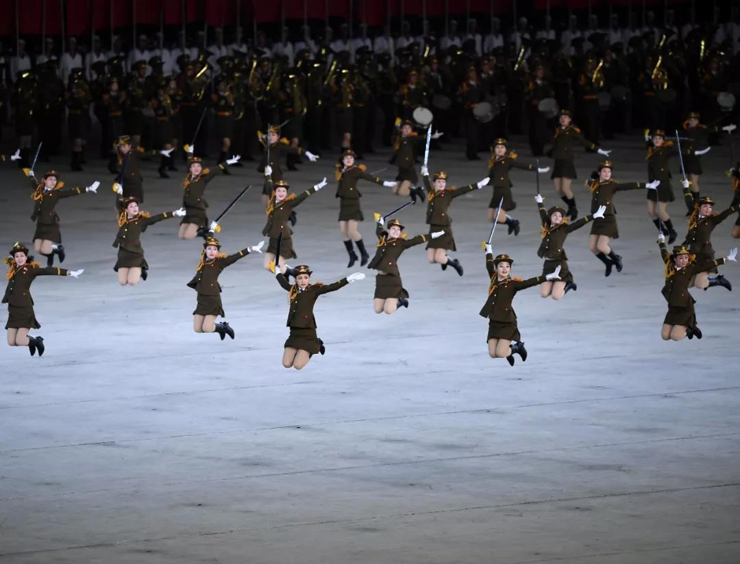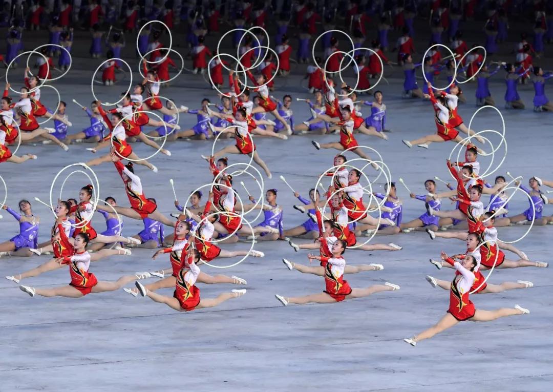 ▲2018年9月9日,演員在平壤綾羅島“五一”體育場表演“輝煌的祖國”。