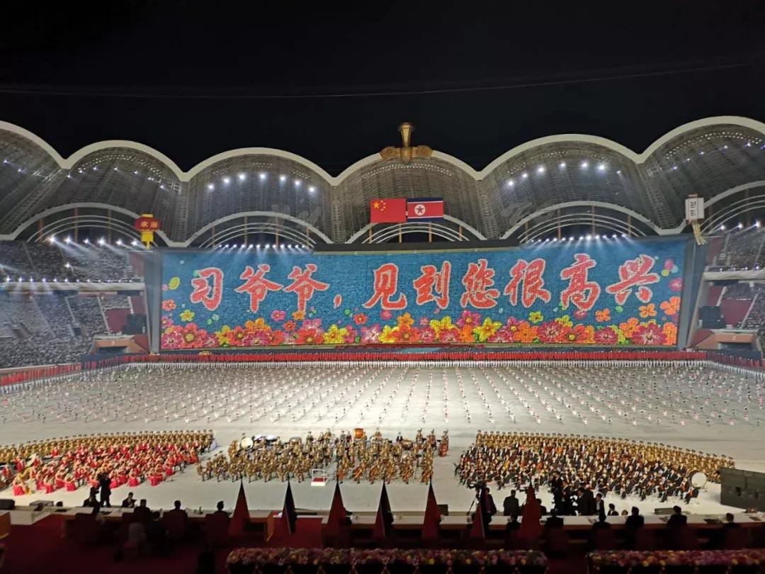 這臺演出為習(xí)近平此訪專門精心創(chuàng)作,數(shù)萬名朝鮮演員參加表演,朝鮮三大樂團(tuán)首次同臺獻(xiàn)藝,整場演出氣勢恢宏、震撼感人。