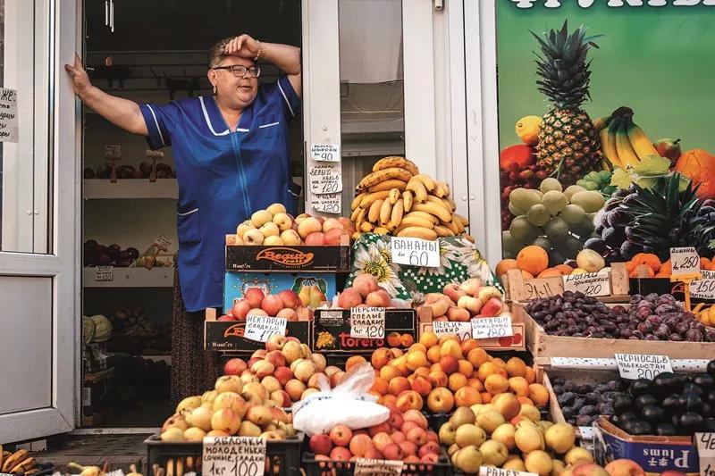 新西伯利亞市中央市場是水果、蔬菜的集散地,室內(nèi)市場多販賣蔬果和香料,室外是附近農(nóng)戶前來擺攤的露天市場。草莓、樹莓、藍(lán)莓、鵝莓、紅醋栗、桑葚、黑加侖、小紅莓、云莓……高飽和度的色彩,讓這些莓果像一幅失真的油畫般呈現(xiàn)在眼前,還是會(huì)散發(fā)香氣的油畫。攤主老太太們大多包頭巾,坦然地抽著煙喝著酒,一邊販賣以“籃”和“筐”為計(jì)數(shù)單位的莓果。