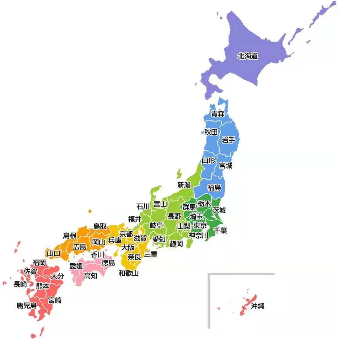 ps:上圖中,紫色部分為北海道,紅色部分為九州,粉色部分為四國(guó),其他部分為本州。