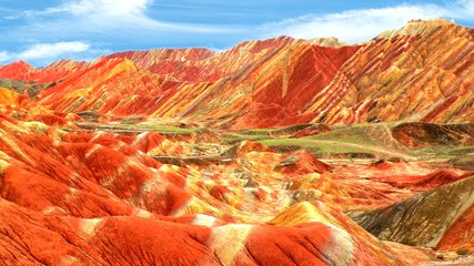 后乘車赴【七彩丹霞地質(zhì)公園】(游覽時(shí)間約2.5小時(shí)),張掖七彩丹霞是中國發(fā)育最完好、造型最豐富的丹霞地貌,張掖丹霞面積廣闊,形態(tài)生動(dòng),惟妙惟肖,窗欞狀、宮殿式、泥乳狀、陡斜式,廊腰縵回、檐牙高啄、各抱地勢(shì)、壁峭柱聳、粗獷偉岸、巧奪天工,堪稱人間奇景;