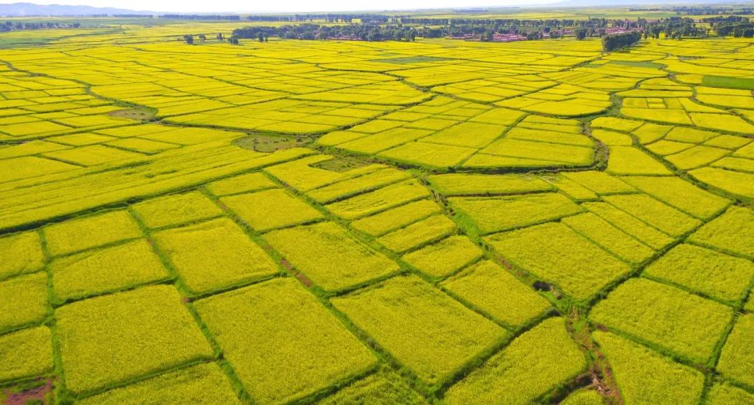 進入7月,漫山遍野的油菜花競相綻放,宛如給大地鋪上一塊巨幅金色“地毯”。放眼望去,金色的油菜花與藍天白云相互映襯,構成一幅美麗的田園畫卷。
