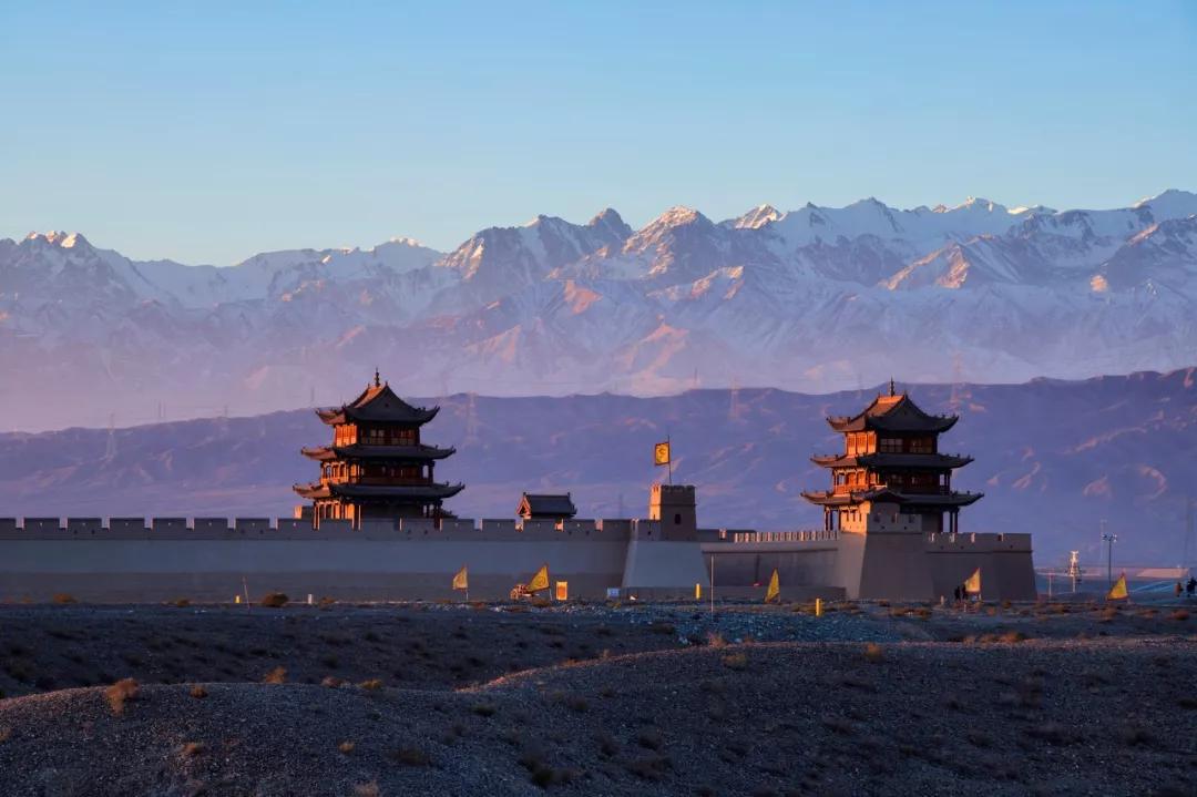 城關兩側的城墻橫穿沙漠戈壁,北連黑山懸壁長城,南接天下第一墩,是明長城最西端的關口,歷史上曾被稱為河西咽喉,因地勢險要,建筑雄偉,有連陲鎖鑰之稱。
