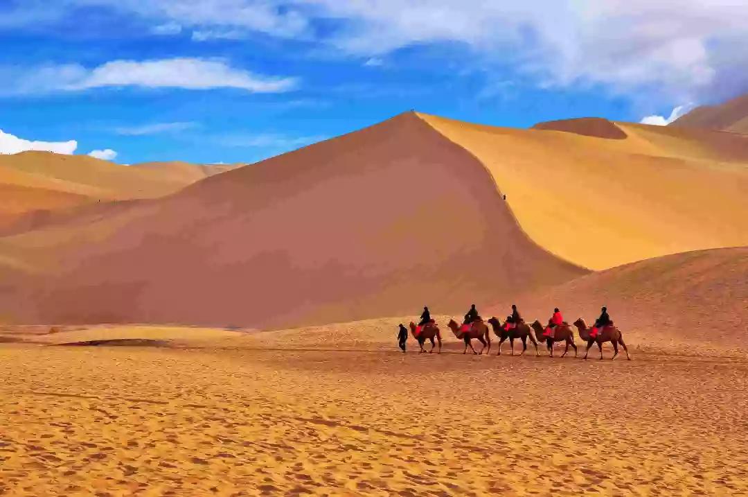 它有天下沙漠第一泉:月牙泉。古往今來以“山泉共處,沙水共生”的奇妙景觀著稱于世,被譽為“塞外風光之一絕”。