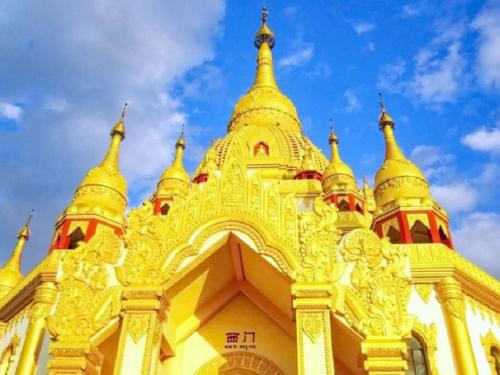 【勐煥大金塔】瑞麗最古老的佛教建筑及佛事活動(dòng)場(chǎng)所。屬南亞傣王宮的建筑風(fēng)格,有著深厚的民族文化內(nèi)涵,堪稱中國(guó)南傳佛教第一塔。相傳,很久以前,每當(dāng)月明星疏之夜,在金塔地基處,地就發(fā)出光芒,極為奇麗,令世人大為驚嘆;