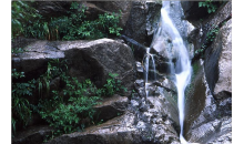 白石山十瀑峽中溪水流淌4000米,穿行于山石之間,十瀑連疊不斷,瀑上有潭,潭泄成瀑,瀑布水花飛濺。飛龍瀑落差48米,瀑面寬3米,如銀河倒掛,聲宏如雷,氣勢(shì)雄偉雙龍瀑分兩級(jí)跌下,落差60米,落差大。干旱時(shí),水流細(xì),顯的非常秀氣;豐水期,銀簾高懸,景色誘人。連疊不斷的瀑布溪水,在綠色蒼郁的植被襯托下,更顯出生機(jī)勃勃,使游人流連忘返。