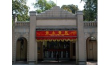 在東山區(qū)文明路6號(hào)(現(xiàn)為215號(hào))。原為廣東高等師范學(xué)堂的鐘樓,鐘樓大院的前面有塊寬闊的廣場(chǎng),占地面積17460平方米,廣場(chǎng)中間是一片大草坪,東西兩端各有一個(gè)大講臺(tái),周?chē)G樹(shù)成蔭,正門(mén)是開(kāi)拱形圓柱廊,廊上有平臺(tái),廊下是門(mén)廳。底層四周是柱廊走道。鐘樓的前半部為二層,后半部為一層。