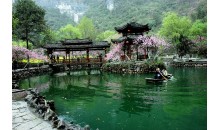 酉陽桃花源,位于重慶市酉陽土家族苗族自治縣,離酉陽縣城不到500米,有一石灰?guī)r溶洞,洞前的桃花溪水自洞內(nèi)流出,清澈見底,嘩嘩地流入泉孔河。