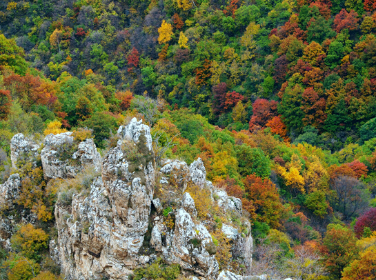 峽谷中,谷寬澗淺,如在盛夏時(shí)節(jié),陽(yáng)光普照,滿山滴翠,空氣清新,鳥語(yǔ)花香。再往前行,只見峰巒閉鎖,兩壁怪石交錯(cuò),明媚的陽(yáng)光已不復(fù)存在,冷風(fēng)習(xí)習(xí)、陰森逼人,只有一線天,亂云飛渡。順山路而進(jìn),時(shí)而陡壁迎面,山窮水盡;時(shí)而峰回路轉(zhuǎn),柳暗花明,別有洞天。當(dāng)?shù)匕傩罩v,四十里飛狐七十二道彎,彎彎有洞天美景,處處含勝景奇觀。峽谷一路前行,有“一炷香”、“雙箭孔”、“三仙思月”、“四將守門”、“五狗望月”、“六郎樁”、“七女峰”、“八仙洞”等奇峰異石,每一處奇觀都會(huì)給人留下無(wú)限遐想。四十里飛狐四十里景,迷宮奇物天作成。它以山峰怪異稱奇,以深幽兇險(xiǎn)稱奇,自古多少兵家因此處山兇地險(xiǎn)而爭(zhēng)戰(zhàn)駐守,多少文人墨客對(duì)奇景嘆妙稱奇留下詩(shī)篇。這里公路通達(dá),車行順暢,更成為旅游觀光、尋覓歷史遺跡的絕好去處。