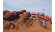 關(guān)于波浪谷,最具有代表性的是在美國的亞利桑那州北部與猶他州交界處的,朱紅懸崖帕利亞峽谷(Paria)的一些巖石,上面有著像波浪一樣的紋路,被稱作"The wave",古老的沙丘隨著科羅拉多平原的上升,加上漫長的風(fēng)蝕、水蝕,砂巖的層次逐漸清晰呈現(xiàn),平滑的、雕塑感的砂巖上流暢的紋路創(chuàng)造了一種令人目眩的三維立體效果,因其神奇的外觀和極高的科研價(jià)值使之成為世界八大巖石奇觀之一,靖邊“波浪谷”與亞利桑那州的波浪谷是有一定區(qū)別的,亞利桑那州的波浪谷在紅色之間夾有白色線條,紅白相間,而靖邊的波浪谷則以紅色為主,不過地質(zhì)構(gòu)造上二者都是同樣的紅砂巖地貌,靖邊波浪谷地質(zhì)構(gòu)造更加年輕,只有6000多萬年歷史,很多砂土還沒來得及凝固為巖石。