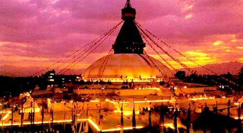 整個(gè)佛塔群像一座小山城,房舍和佛舍之間形成一道環(huán)形街道,商店林立,居民大都是西藏裔。出售的多為佛像或西藏式首飾。每年朝拜季節(jié),不丹、錫金和中國西藏佛教徒來此甚眾。