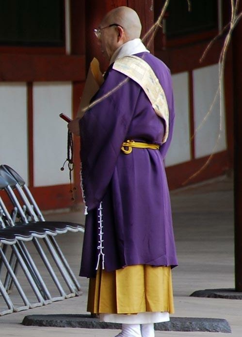 為國(guó)家和萬(wàn)民悔過(guò),須有特定的集團(tuán)和大型儀式。因此,由僧團(tuán)共同舉行法會(huì)以悔過(guò),修二會(huì)便是其中的儀式之一。僧侶被稱為“練行眾”,現(xiàn)在由11人組成,分工各不相同。授戒師、大導(dǎo)師、結(jié)印誦唱陀羅尼咒的咒師,及總管修二會(huì)內(nèi)外雜務(wù)的堂司等4人被稱為四職,其余7人名平眾,而且還有許多人輔佐練行眾,直接參加法會(huì)的人多達(dá)30余名。