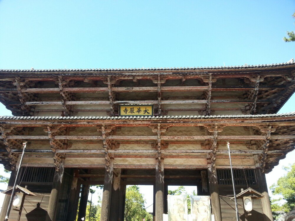 被稱為世界遺產(chǎn)的東大寺正門——南大門,寬約50米、高約25米。于760年建成但因?yàn)榛馂?zāi)燒毀了,于鐮倉(cāng)時(shí)期被修復(fù)重建。南大門設(shè)有高大威猛的金剛力士像(哞形像)。