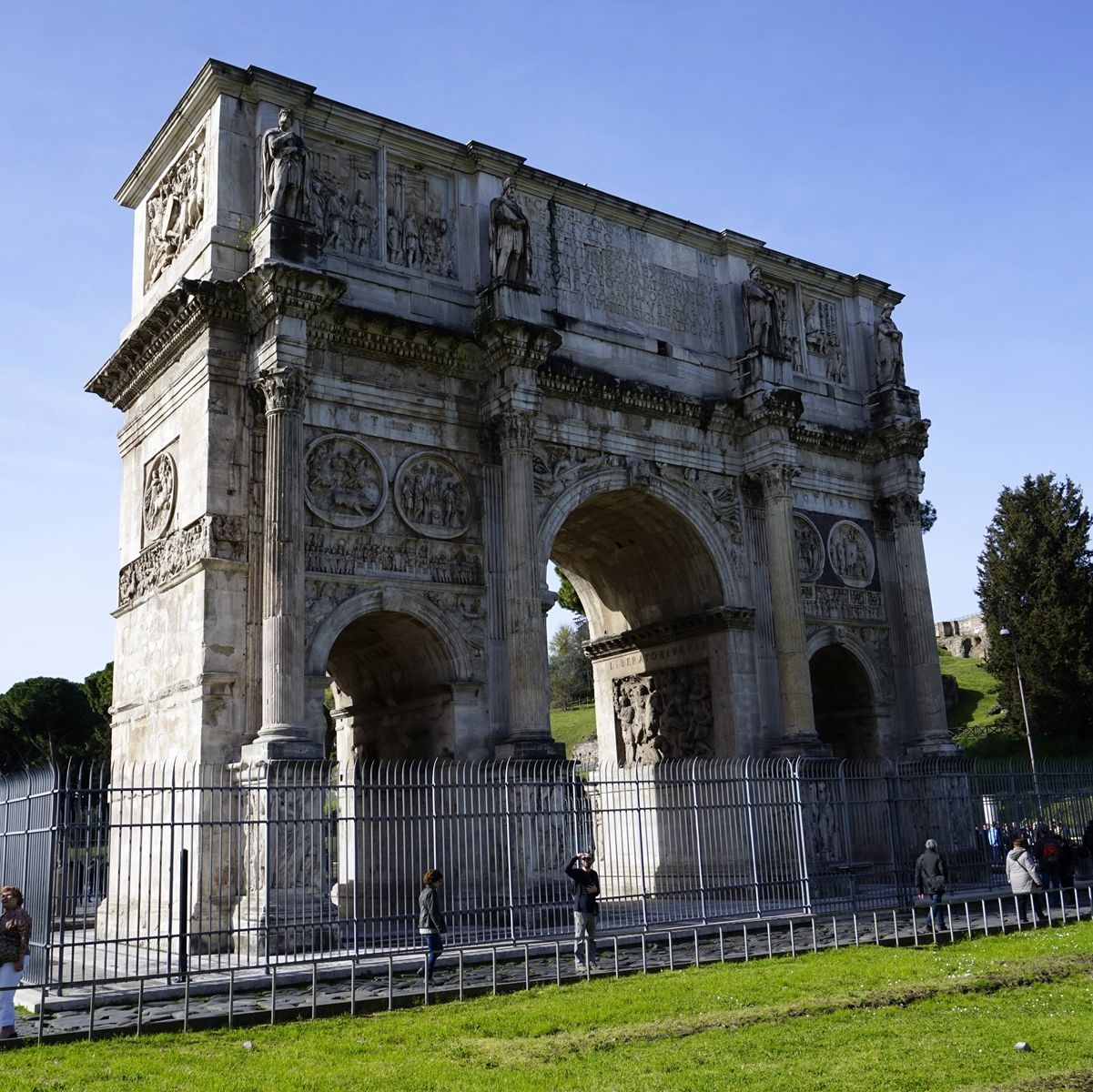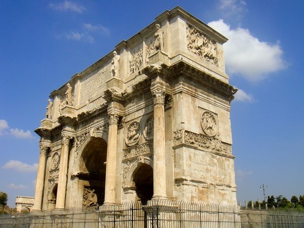 這座拱門上面的絕大多數裝飾品其實都是取白于以前的皇帝們所建造的各種建筑物,這也表明羅馬的藝術已經開始走下坡路了。所以君士坦丁凱旋門是羅馬三座凱旋門中建造最晚的一座。
