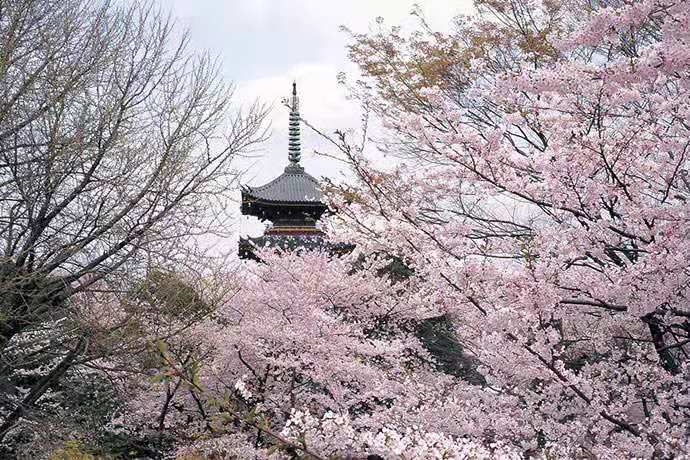 早在1624年便修建完備的寬永寺,至今仍立于不忍池畔。正是寬永寺建立之時移種的櫻花,開啟了上野公園賞櫻名園的歷史。如今上野公園已有1300多株櫻花,其中櫻花名品“染井吉野”,就是由上野公園開始而為世人廣知的。每年櫻花花季時,上野公園櫻花大道的緋紅云朵,早已在魯迅筆下化為國人對日本櫻花的第一印象。而花開時節(jié)在夜間燈光下觀賞“夜櫻”,是日本人賞櫻的獨特方式。