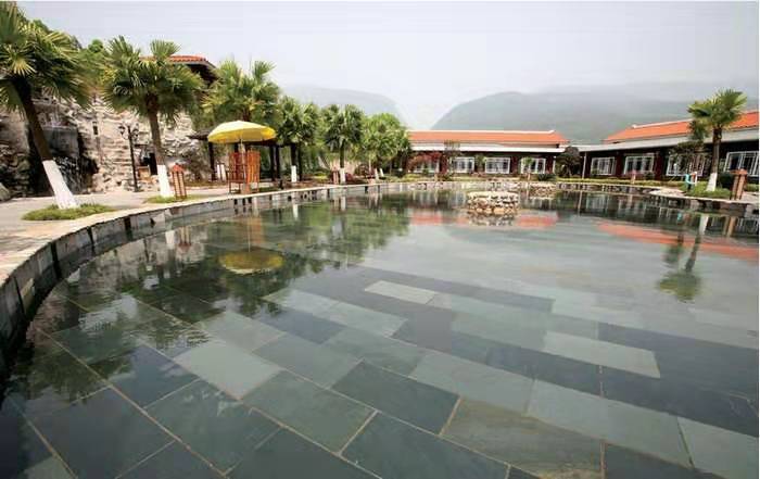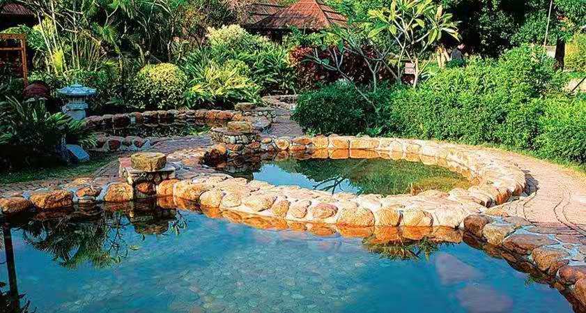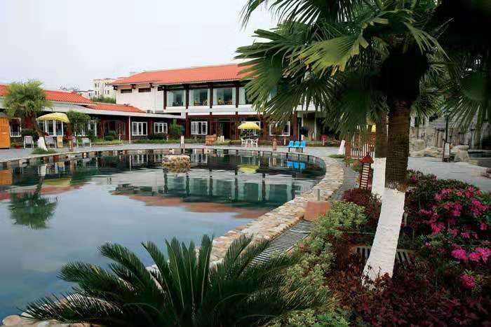 房、娛樂、會(huì)務(wù)、健身于一體的健康、休閑、度假、旅游樂園。度假村傍山依水,環(huán)境幽雅,景色怡人。江埡溫泉水質(zhì)清澈碧透,水溫常年在54度左右,溫泉水富含對(duì)人體有益的多種礦物質(zhì)元素。泉水伴著春夏秋冬、日月星辰不停不歇地從地心涌出。江埡溫泉主要硬件特色是高標(biāo)準(zhǔn)的自然園林式露天溫泉與室內(nèi)溫泉,建有同心池、六福湯、瀑布溫泉、石板溫泉、椰奶溫泉、花草溫泉、咖啡溫泉、紅酒溫泉等,布局體現(xiàn)出鄉(xiāng)土格調(diào),鵝卵石、青石板鋪地, 假山瀑布,小橋流水,20余種各賦特色、各具功能的溫泉池鑲嵌其中, 一派恬淡寧靜的詩情畫意。