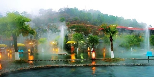 成誠。同心泉可供200人同時(shí)共浴,水溫38-41度,可躺可坐,沐浴其中,仰望藍(lán)天白云,遠(yuǎn)眺雄山奇峰,伴隨著典雅的鄉(xiāng)村音樂,周身便覺溫曖如春、愜意萬分。