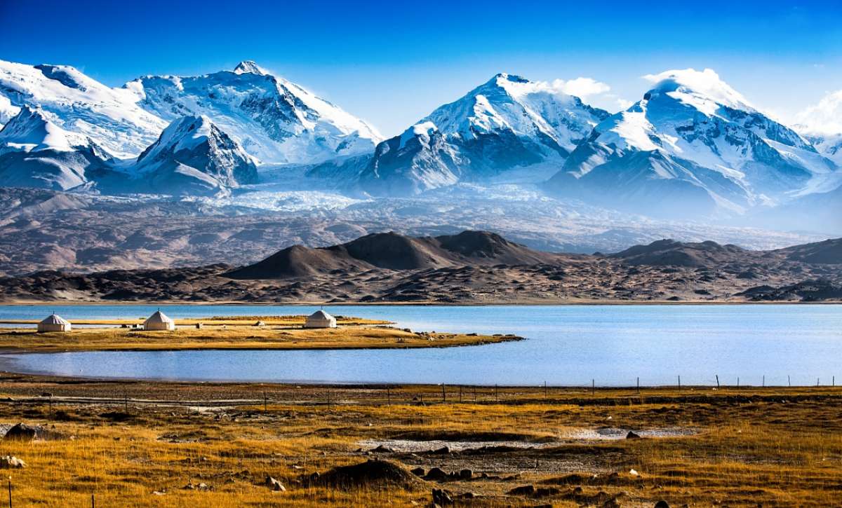 卡拉庫里湖并不是很大,若不是高大的公格爾峰、公格爾九別峰、慕斯塔格峰緊挨著湖邊,卡拉庫里湖著實(shí)沒那么出彩。然而有了山就不同了,繞湖一圈,幽藍(lán)的山脊倒映在更加幽藍(lán)的水面,湖光山色,頗令人有些美好的遐想。湖邊有氈房、木板房可供旅游者下榻,包括新鮮蔬菜在內(nèi)的風(fēng)味餐,欣賞帕米爾高原的大好風(fēng)光。