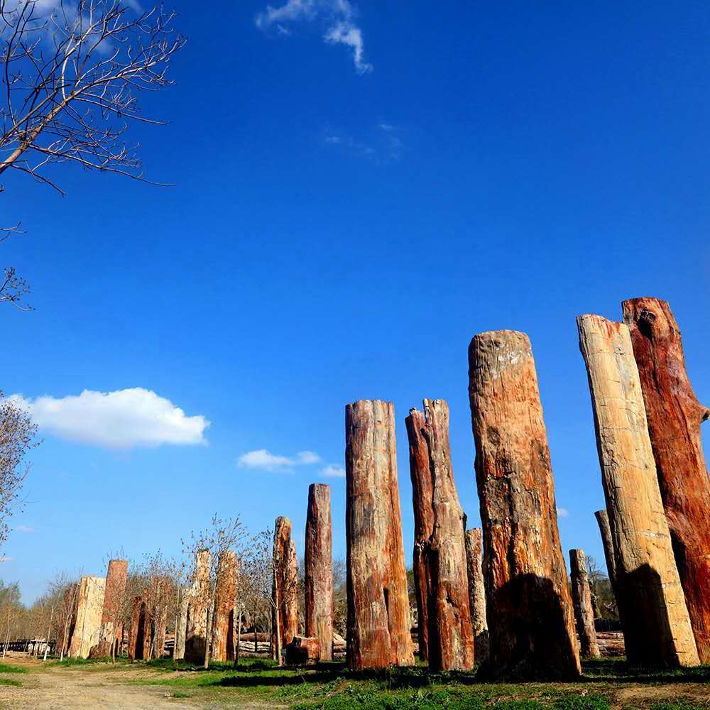 新疆古生態(tài)園內有近三百根硅化木,是世界最大的侏羅紀硅化木集中保護基地。