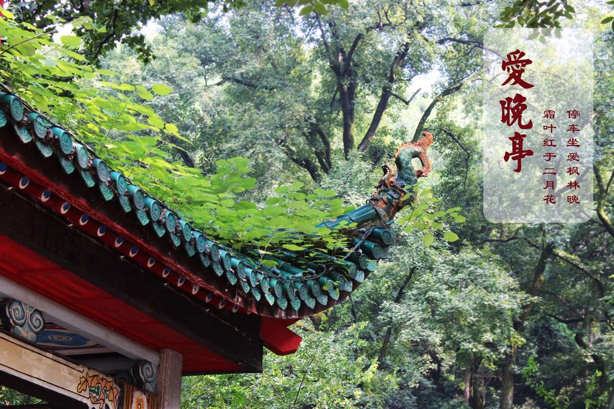愛(ài)晚亭位于岳麓書院后青楓峽的小山上,八柱重檐,頂部覆蓋綠色琉璃瓦,攢尖寶頂,內(nèi)柱為紅色木柱,外柱為花崗石方柱,天花彩繪藻井,蔚為壯觀。版權(quán)所有山東聊城聊之旅國(guó)際旅行社有限公司,轉(zhuǎn)載必究!清乾隆五十七年(公元一七九二年)山長(zhǎng)羅典所建。原名“紅葉亭”,又名“愛(ài)楓亭”。后據(jù)唐代詩(shī)人杜牧《山行》而改名為愛(ài)晚亭,取“停車坐愛(ài)楓林晚,霜葉紅于二月花”之詩(shī)意。