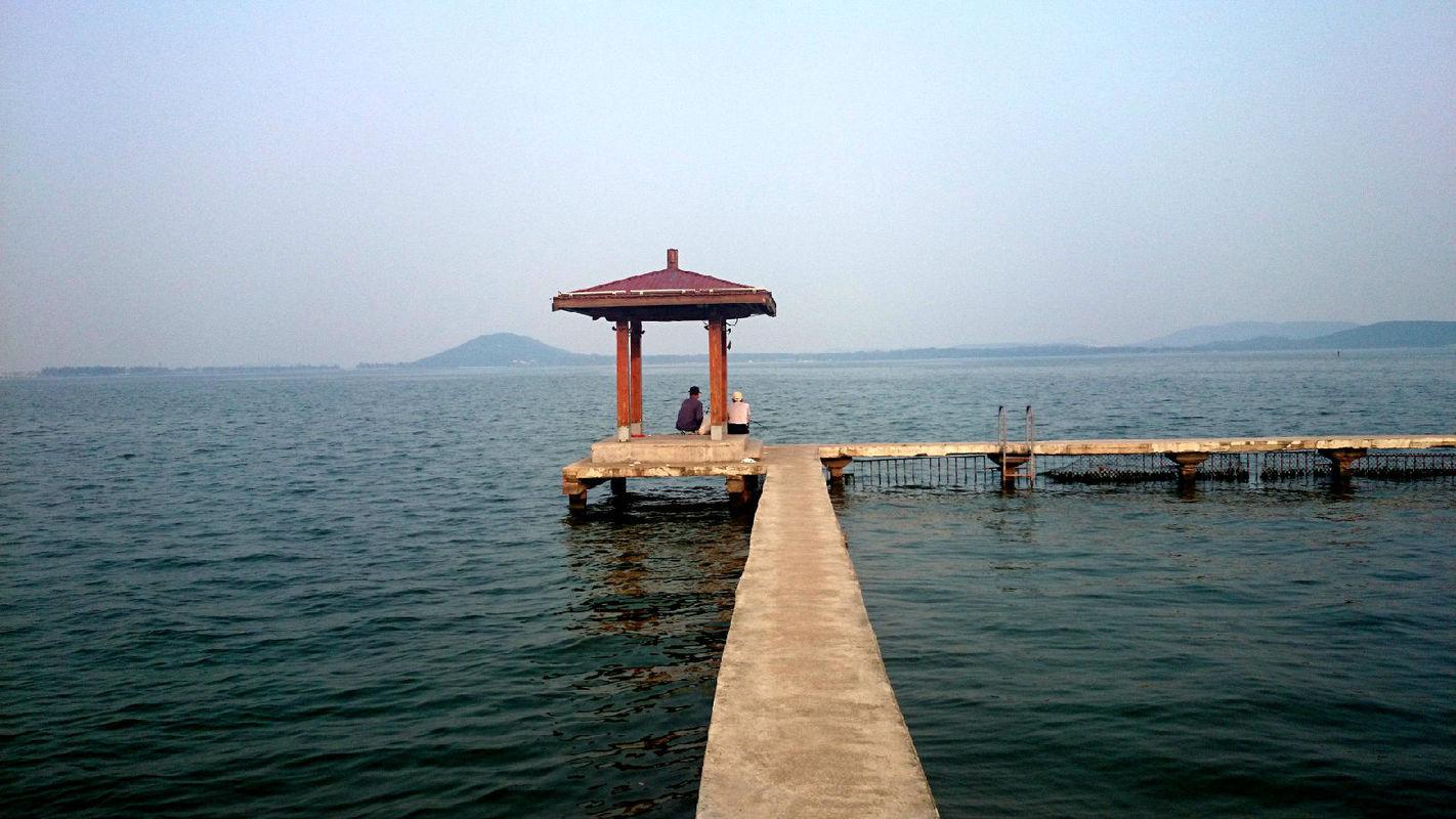 建于湖心小島上,由十里長堤與陸地相連,原名“中正亭”,1931年為紀(jì)念蔣介石五十壽辰而建,后改稱“湖光閣”。閣為三層六面,飛檐綠瓦,登閣四顧,游船輕移,景象萬千。霧日,水天一色,湖光高閣,似蓬萊仙境,無不令人向往。