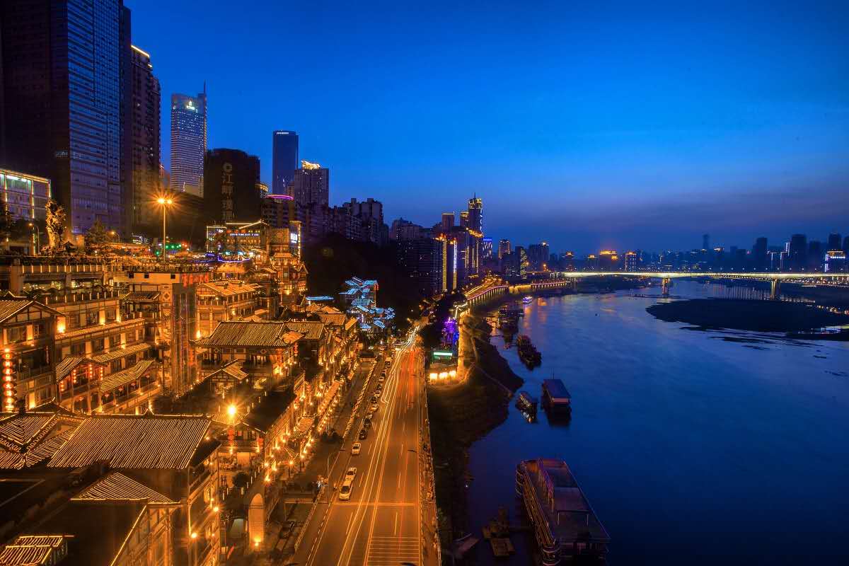洪崖洞,原名洪崖門(mén),是古重慶城門(mén)之一,位于重慶市渝中區(qū)解放碑滄白路,地處長(zhǎng)江、嘉陵江兩江交匯的濱江地帶,是兼具觀光旅游、休閑度假等功能的旅游區(qū)。