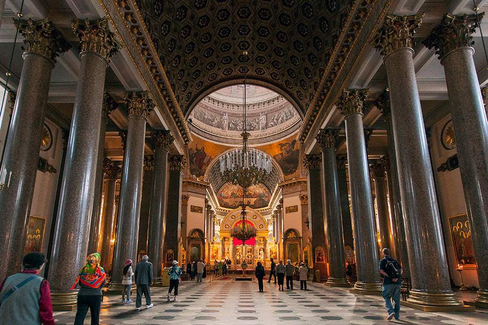 建筑師在設(shè)計這座教堂時遇到不少困難。根據(jù)東正教教規(guī)要求圣堂必須面向東方,因而必然造成教堂往往是側(cè)面對著主要大街。建筑師們采取了把側(cè)面設(shè)計得十分壯觀的方法解決了這一難題。版權(quán)所有山東聊城聊之旅國際旅行社有限公司,轉(zhuǎn)載必究!因為人們一看氣度非凡的柱廊,就忘記了這不是教堂的正面。這種處理方法極其大膽,富有特色。高大的圓頂居中聳立在一排排圓柱上空,圓頂有70米高。大教堂正面的浮雕、北面柱廊上的雕刻、殿內(nèi)裝飾和油畫均出自名家之手。喀山大教堂的內(nèi)部不大像一般的教堂,而更像一座宮殿。它明亮、輕快,以柱列分隔的長形主堂高大寬敞,中央穹頂輝煌華麗,仰視可見一幅圣母圖,周邊飾以圣經(jīng)人物雕刻和水彩壁畫。