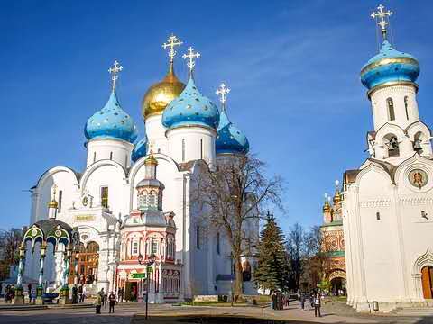 亦譯特羅伊察修道院。1337年一個(gè)名叫謝爾蓋·拉多涅日斯基的僧侶在莫斯科近郊謝爾蓋耶夫(即今扎戈?duì)査箍?/span>)的偏僻森林里建立一座三圣小教堂和小道房,為該修道院的前身。后來(lái)凡愿在此出家的人,必須自造小道房并自辟膳食用地,由此發(fā)展而成為東北羅斯最富有的大修道院。1744年獲大修道院稱號(hào),是東北羅斯古典建筑群的代表。修道院石墻高達(dá)15米,成為莫斯科北方重要防御據(jù)點(diǎn)。它擁有幾個(gè)世紀(jì)以來(lái)、歷經(jīng)各個(gè)朝代改建和擴(kuò)建的各種形式的教堂和附屬建筑群。包括三圣教堂、杜霍夫斯基降靈教堂、圣母升天教堂,教皇宮殿和斯摩棱斯克教堂(1748年),以及齋房、鐘樓、慈善醫(yī)院等。其中最著名的三圣教堂建于1423-1442年,是俄羅斯早期白石建筑藝術(shù)典范。