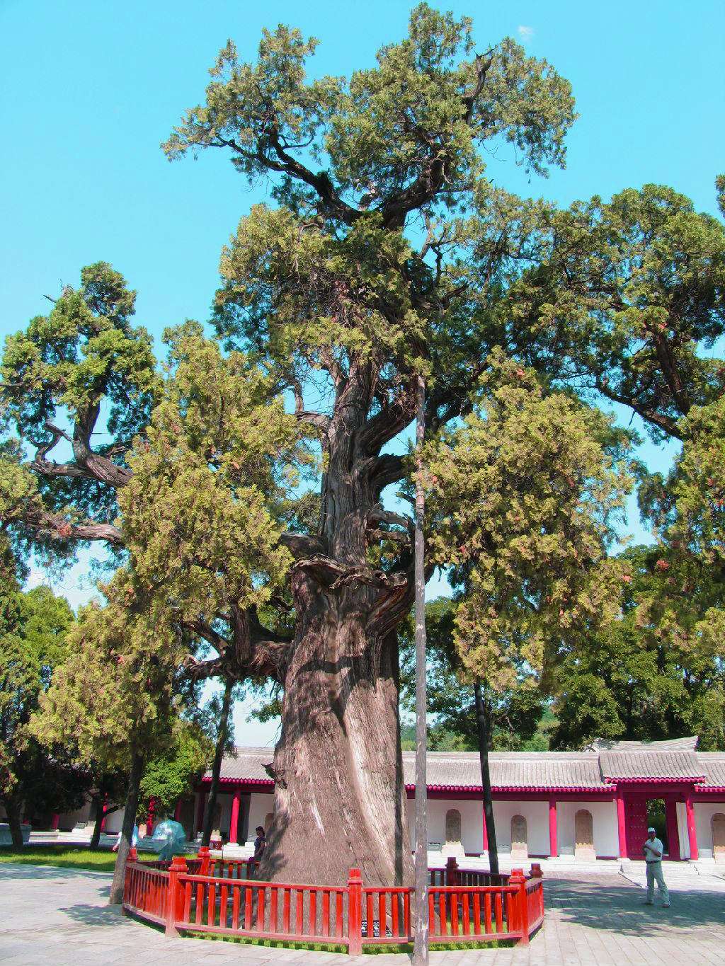 進(jìn)入廟院山門,軒轅黃帝手植柏首先映入眼簾。黃帝手植柏,位于軒轅廟門內(nèi)左側(cè)2米處,傳說(shuō)是黃帝親手栽植。在植物學(xué)分類上稱為側(cè)柏,別名扁柏、扁松、肩檜、黃柏、香柏,英文名稱OrientalArbor Vitae,是我國(guó)特有柏樹(shù)品種,自古以來(lái)多栽于庭園、寺廟和陵墓。版權(quán)所有山東聊城聊之旅國(guó)際旅行社有限公司,轉(zhuǎn)載必究!1982年,英國(guó)林學(xué)專家羅皮爾等人在考察了世界27個(gè)國(guó)家后來(lái)到我國(guó),驚嘆它是“世界柏樹(shù)之父”。古柏蒼翠健旺,樹(shù)干略向南傾,樹(shù)高19.3米,胸徑11米。當(dāng)?shù)刂V語(yǔ)稱“七摟八半,疙里疙瘩不上算”,意思是七個(gè)人手拉手摟不住,還剩八半,況且有疙瘩的地方尚未計(jì)算在內(nèi)。實(shí)為群柏之冠。