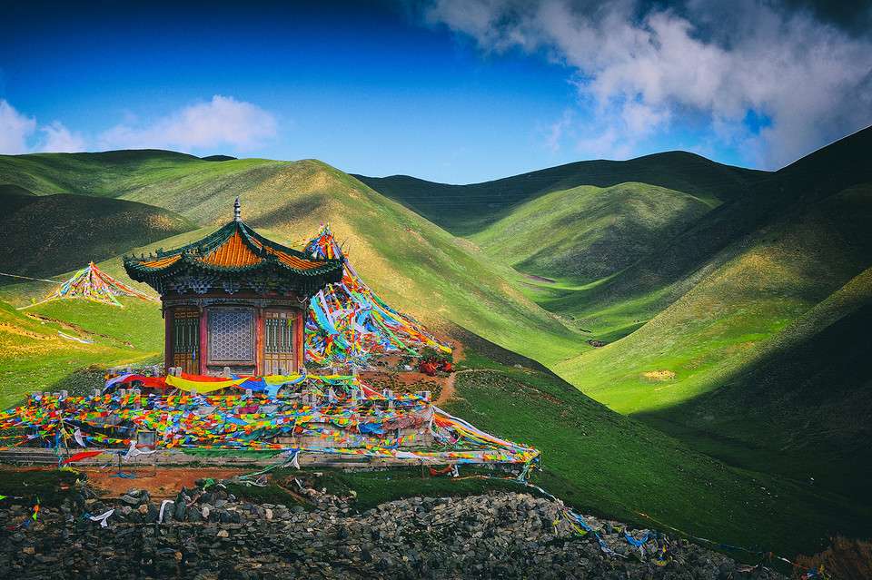 今天的日山和月山上各修建了兩座亭子,分別叫日亭和月亭,經(jīng)幡飄舞的亭子里面用碑文和壁畫(huà)記錄了公主入藏時(shí)的種種情景。山上是無(wú)數(shù)藏人用虔誠(chéng)和信仰堆起的瑪尼堆,石堆上插滿(mǎn)了盤(pán)樹(shù)虬枝。版權(quán)所有山東聊城聊之旅國(guó)際旅行社有限公司,轉(zhuǎn)載必究!山下是文成公主廟,矗立著巍峨的文成公主漢白玉雕像。藏歌悠悠,牛羊如云,無(wú)數(shù)經(jīng)幡和高昂的藏歌迎著日光漠風(fēng)飄揚(yáng),表達(dá)出一代又一代人們對(duì)那美麗靈魂的深深崇敬。