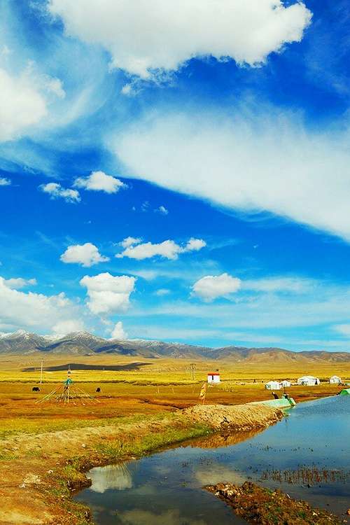 山下的倒淌河,這條華夏大地惟一一條我行我素倔強(qiáng)地從東流到西的倒淌河,凝聚了公主太多復(fù)雜的淚水,幽靜而溫柔地倒淌著,是倒淌那段千年不斷的感情?是倒淌那千年流不斷的眷念?文成公主途經(jīng)赤嶺作短期停留的歷史事實(shí),給漢藏人民留下了美好的記憶,青海民間至今流傳著這樣的故事:當(dāng)文成公主行至赤嶺,將要離別唐朝管轄的土地,心中一片愴楚。向前西望吐蕃,天高云低,草原蒼茫;回頭東望長(zhǎng)安,更加留戀故土。遂拿出皇后賜予的“日月寶鏡”,從中照看長(zhǎng)安景色和親人,不禁傷心落淚,思鄉(xiāng)的淚水匯集成了倒淌河,由東向西,流入青海湖。但當(dāng)她想到身負(fù)唐蕃聯(lián)姻通好的重任時(shí),便果斷地摔碎了“日月寶鏡”,斬?cái)嗔藢?duì)故鄉(xiāng)親人的眷戀情絲,下定了毅然前行的決心,義無(wú)反顧地走上了西行的道路。繼這次和親的70年后,唐又以宗室女金城公主嫁給吐蕃贊普棄隸縮贊,金城公主沿著文成公主走過(guò)的路,又一次經(jīng)過(guò)了日月山。金城公主入蕃和親,對(duì)于促進(jìn)唐蕃經(jīng)濟(jì)文化交流,同樣具有重要的意義。今天,日亭、月亭在當(dāng)年公主駐足的地方高高聳立,站在亭前西望,當(dāng)年崎嶇艱難的路程如今已變成了連接漢藏人民的康莊大道。