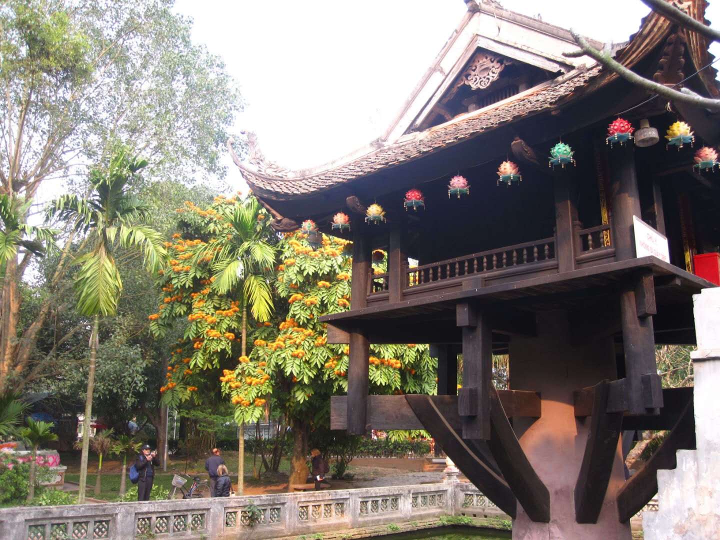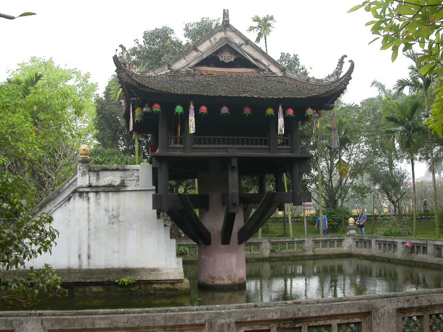 獨(dú)柱寺是越南獨(dú)具一格的古跡之一,位于河內(nèi)巴亭廣場西南,因建在靈沼池中一根大石柱上而得名。