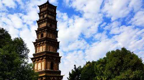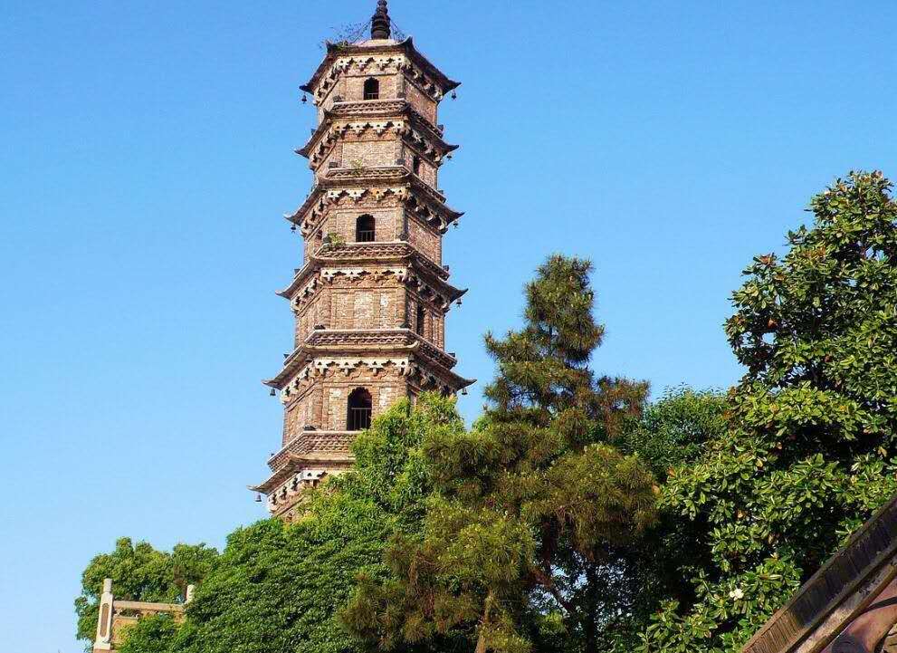 位于長江之濱,九江市東北隅,傲然屹立,高聳藍(lán)天,瀟灑古樸,偉岸氣昂,塔影鎖江,風(fēng)雅微妙。塔高35 米,造就七層,六面錐狀,青磚砌身,石鑿拱頂,宛如撐天大柱突兀江畔。