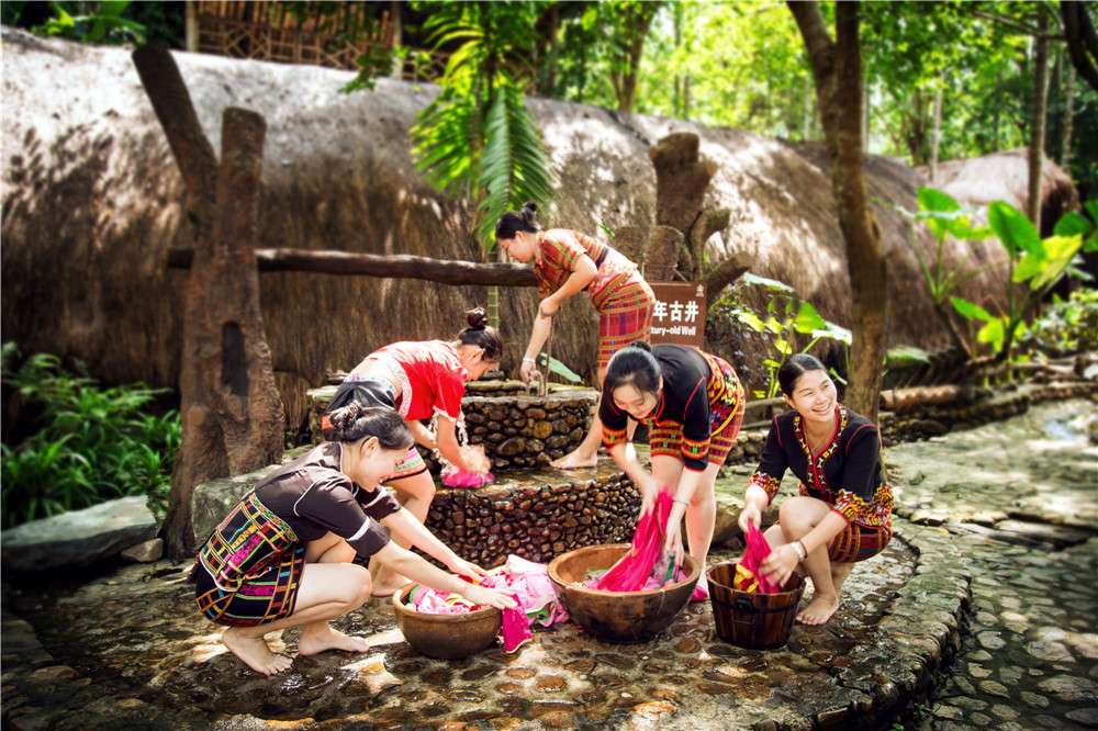 在非遺村內(nèi)感受海南原住民四大主題博物館:無紡館、麻紡館、棉紡館、龍被館,在百年甘什黎村置身遠古的黎族部落,體驗做一回真正的黎家人。