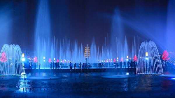 西安大雁塔北廣場是一個規(guī)模宏大的音樂噴泉廣場東西寬218米南北長346米是目前全國乃至亞洲最大的噴泉廣場。噴泉和附屬土建資金投入約5億元在全國首屈一指;其八級疊水池中的八級變頻方陣是世界最大的方陣。這套噴泉共設計獨立水型22種其變頻方陣(排山倒海水型)蓮花朵朵;百米變頻跑泉云海茫茫;海鷗展翅、蝶戀花、水火霧以及60米高噴水柱等都是我國最新推出的科技含量較高的新穎水型;60米寬、20余米高的大型激光水幕中4臺噴火火泉從水里噴出在6米高空充分燃燒低溫爆開更增加了整個噴泉的奪人氣魄。音樂采用高保真遠射程專業(yè)音響系統(tǒng)使噴泉聲、光、水、色有機交融。