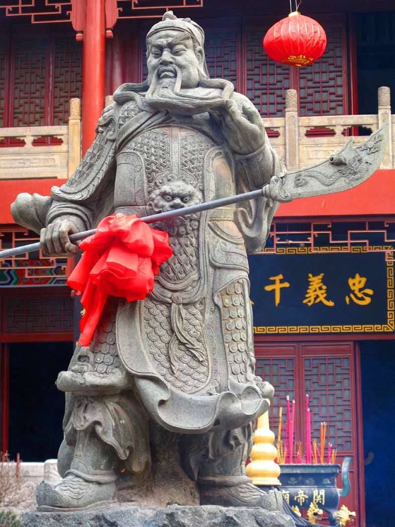 9、廣場關(guān)公立姿石像 誠信殿旁,花崗巖雕塑的關(guān)公立姿像,高4.8米,關(guān)公面朝東方,握刀遠眺,威儀凜然,似乎在訴說“我回來了”!