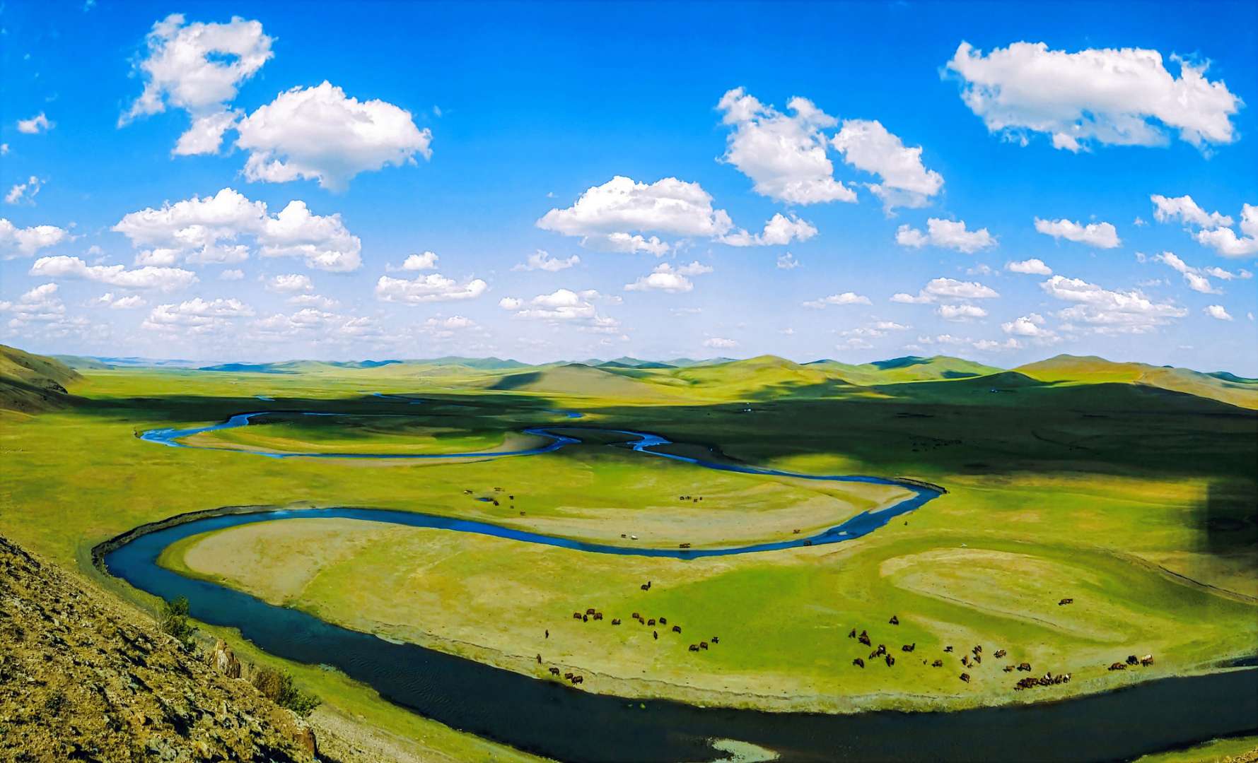 藍(lán)天白云下,鑲嵌在一望無(wú)際的綠色草原上的莫日格勒河,顯得是那樣?jì)扇釈趁?在這種純自然的優(yōu)美環(huán)境中,騎上駿馬,駱駝,或是坐在勒勒車(chē)上,沿著彎彎曲曲的莫日格勒河溜上一圈,再走進(jìn)蒙古包里喝上幾碗用莫日格勒河水和鮮奶煮就的奶茶,嘗一嘗香氣四溢的手把肉,同牧民聊聊家常,聽(tīng)牧民講述動(dòng)人的傳說(shuō)和故事,那該有多么愜意啊.