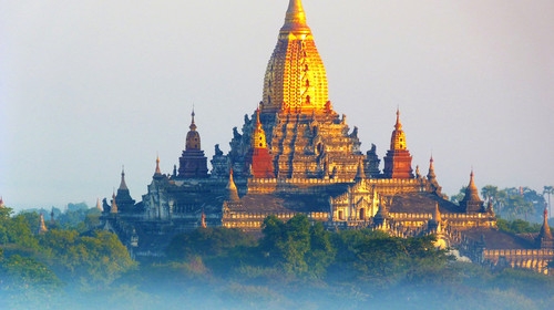 蒲甘王朝是由阿奴律陀國王(King Anawrahta,1044年至1077年在位)于1044年建立,為緬甸第一個統(tǒng)一的帝國,以上座部佛教為國教。阿諾耶塔國王相繼征服撣族和孟族,也不斷擴展領(lǐng)土。在阿朗西都國王(King Alaungsithu,1111年至1167年在位)掌政時,上座部佛教逐漸成為主流,并在13世紀初期達到頂盛。當時建造的3000余座寺廟尚有100座保存至今。1287年蒙古統(tǒng)治者忽必烈(Kublai Khan)率領(lǐng)元朝軍隊大肆入侵(元緬戰(zhàn)爭)而使得蒲甘王朝失去了獨立性,不久后滅亡。