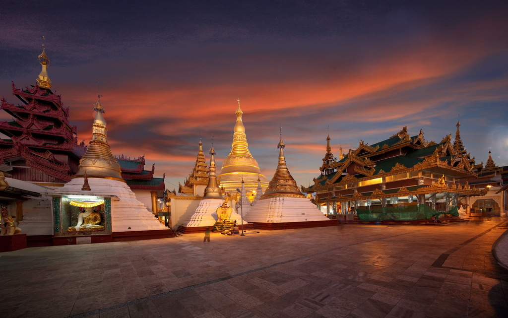 大金塔是仰光最具代表性的景點,塔高110米,坐落于市內(nèi)一座小山上,表面涂有72噸的黃金,塔頂由近3000克拉的寶石鑲嵌而成。整個建筑群非常雄偉,在陽光的照射下顯得奪目而耀眼。傳說是保存有佛祖八根頭發(fā)的商人兩兄弟建成,已有2500年的歷史。