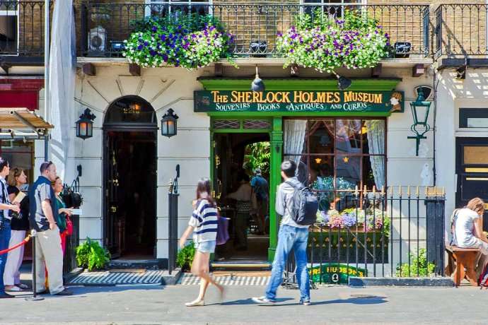 貝克街221B號(hào)(及239號(hào))是于1990年成立的福爾摩斯博物館(Sherlock Holmes Museum),館內(nèi)的布置擺設(shè)都以小說中提及的情節(jié)為佐,更增添福爾摩斯舊居的真實(shí)性。這是個(gè)精巧迷人的觀光場所,福爾摩斯與華生醫(yī)生的辦公室都依據(jù)故事內(nèi)容重新裝潢。你可以坐在一樓書房的爐子旁,試戴福爾摩斯的帽子,并拿著他的煙斗,模仿他的姿勢。再走一點(diǎn),就會(huì)看到真正的221B號(hào),它現(xiàn)在是國家教堂,這里每周都會(huì)收到從世界各地的福爾摩斯迷寄來的一百多封信。親自造訪教堂的人們,可以免費(fèi)拿到福爾摩斯簡冊(cè)與明信片。