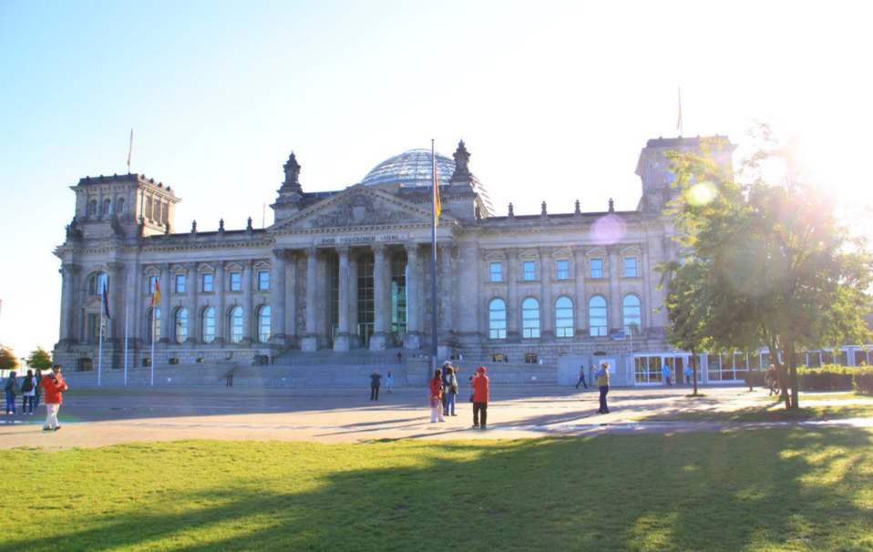 柏林的德國國會大廈建于1884年,由德國建筑師保羅·瓦洛特設計,采用古典主義風格,最初為德意志帝國的議會。1918年11月9日,議員菲利普·沙伊德曼通過國會大廈的窗口宣告共和國的成立。1933年2月27日大廈失火,部分建筑被毀,失火原因不明?!?/span>國會縱火案”成為納粹統(tǒng)治者迫害政界反對派人士的借口。二戰(zhàn)中,大廈遭到嚴重毀壞。1945年4月30日,蘇聯(lián)紅軍把紅旗插上國會大廈的屋頂,宣布了反法西斯戰(zhàn)爭的勝利。1961至1971年間,大廈按保羅·鮑姆加藤的設計方案重建。重建的國會大廈對建筑進行了簡化,省去了1945年被炸掉的大廈圓頂部分。這座曾位于柏林墻邊界上的大廈內曾辦有“德國歷史問答”展覽。該展覽遷至德國大教堂中。兩德統(tǒng)一之后,德國聯(lián)邦議會決定重新遷入國會大廈。1990年10月3日德國人民在國會大廈前慶祝了國家的重新統(tǒng)一,同年12月20日,第一屆全德聯(lián)邦議會確定柏林為統(tǒng)一德國的首都,國會大廈則被定為德國聯(lián)邦議院所在地。1994年至1999年,諾曼·弗斯特爵士以大廈最初的規(guī)模為藍本設計,對國會大廈進行了重新修建,建成為一座現(xiàn)代化的議會辦公大樓,新建的穹形圓頂供人游覽。1994年修復工程開始之前,國會大廈曾成為全歐洲最引人注目的藝術品。德國聯(lián)邦議院于1998年底遷入國會大廈,1999年在此選舉下一任聯(lián)邦總統(tǒng)。現(xiàn)曾讓人爭議一時的穹形圓頂已成為柏林城的新標志。