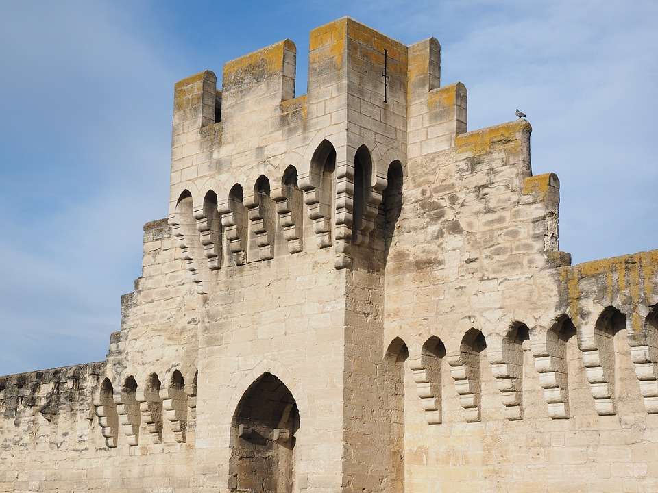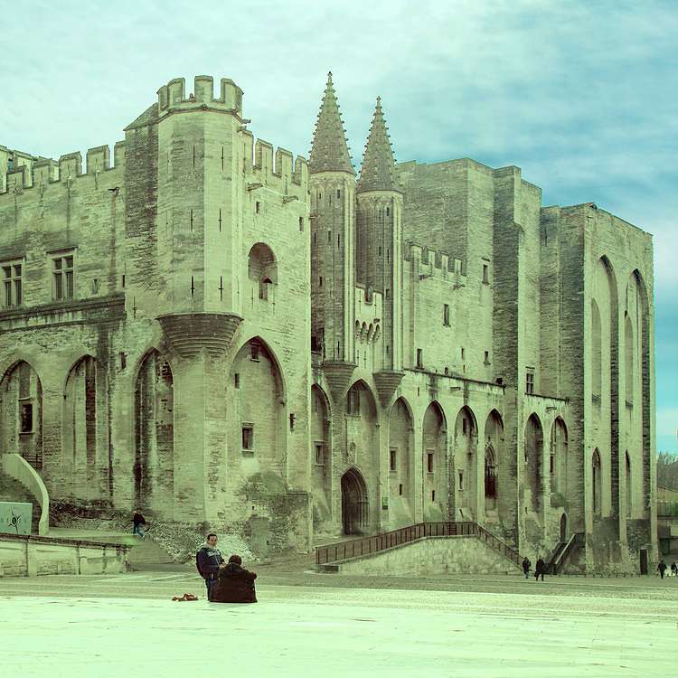 教皇宮(Palais des Papes) 由西蒙德 . 馬蒂尼和馬泰奧.焦瓦內(nèi)蒂設(shè)計(jì)裝飾的羅馬教主宮,看上去是非常古樸的城堡,它俯視著這座城市,環(huán)城的城墻和 12 世紀(jì)遺留下來的橫跨羅納河的橋梁。這座突出的哥特式建筑下面的廣場上,小宮殿和圣母院教士的羅馬主教堂構(gòu)成了一組特殊的紀(jì)念碑,他們顯示了阿維尼翁在 14 世紀(jì)基督化的歐洲所扮演的突出角色。